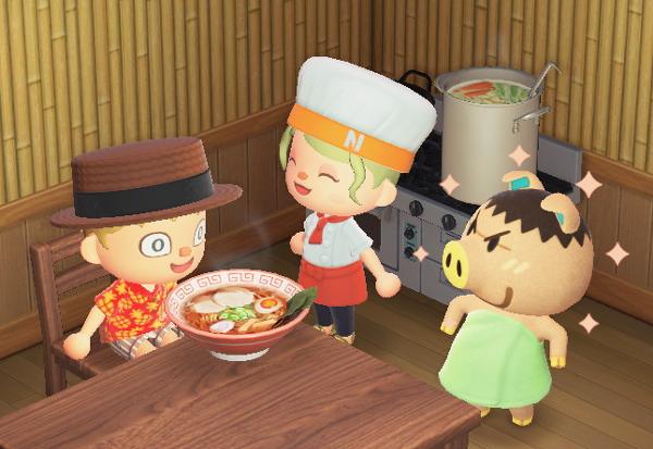 客:美味い、このスープは何を使っているんだ!?店員:こちらラーメンのスープは横にいる豚の汗を使っています^^