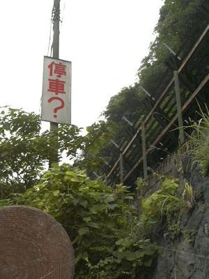 この先に「結局停めねぇのかよ!」という看板がある