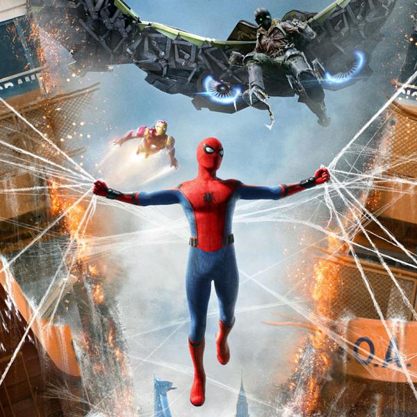 スパイダーマンが蜘蛛の糸にひっかかる