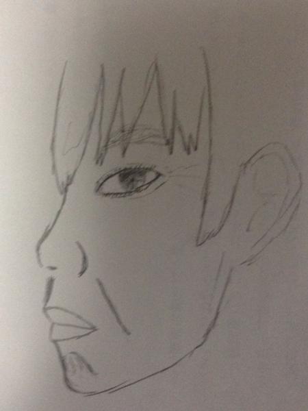 右の目から始めて正面顔描こうとして途中から設定変更