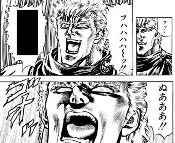 赤い部分を突けば「あべしっ」それ以外は「ひでぶっ」です。