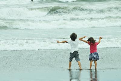 「 お父さん 首まで埋めたの、 確か あの辺だったよね?」 「どーでもいいわよ。波を満喫しましょ♡」