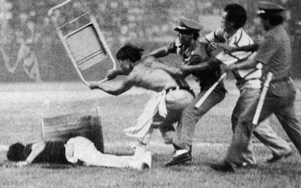 こらっ!岡田っ!試合中に「酔拳」観たらあかんやろっ!掛布が頭から血流しとるやんけっ!