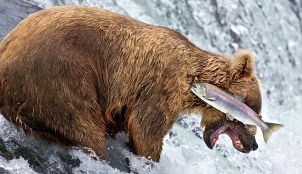 熊が鮭をナイスキャッチするあの画像の真似しようとしたら位置をミスった