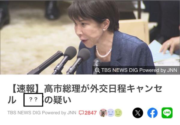 高市総理が外交日程キャンセルキャンセル