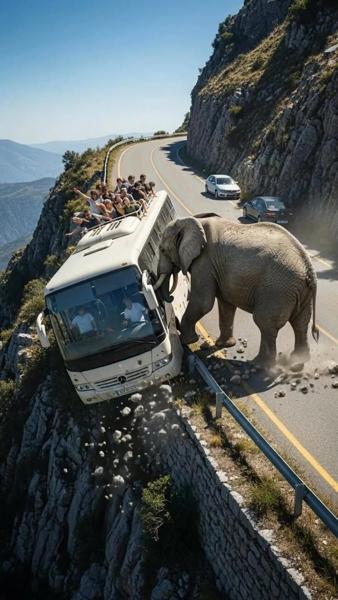 バスが落ち掛けていたその時!アフリカゾウは迷い無く彼等を助けようとした!!